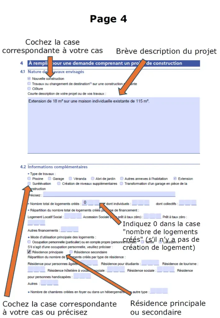 Par exemple, les surfaces indiquées dans le CERFA doivent correspondre aux surfaces représentées sur les plans.
