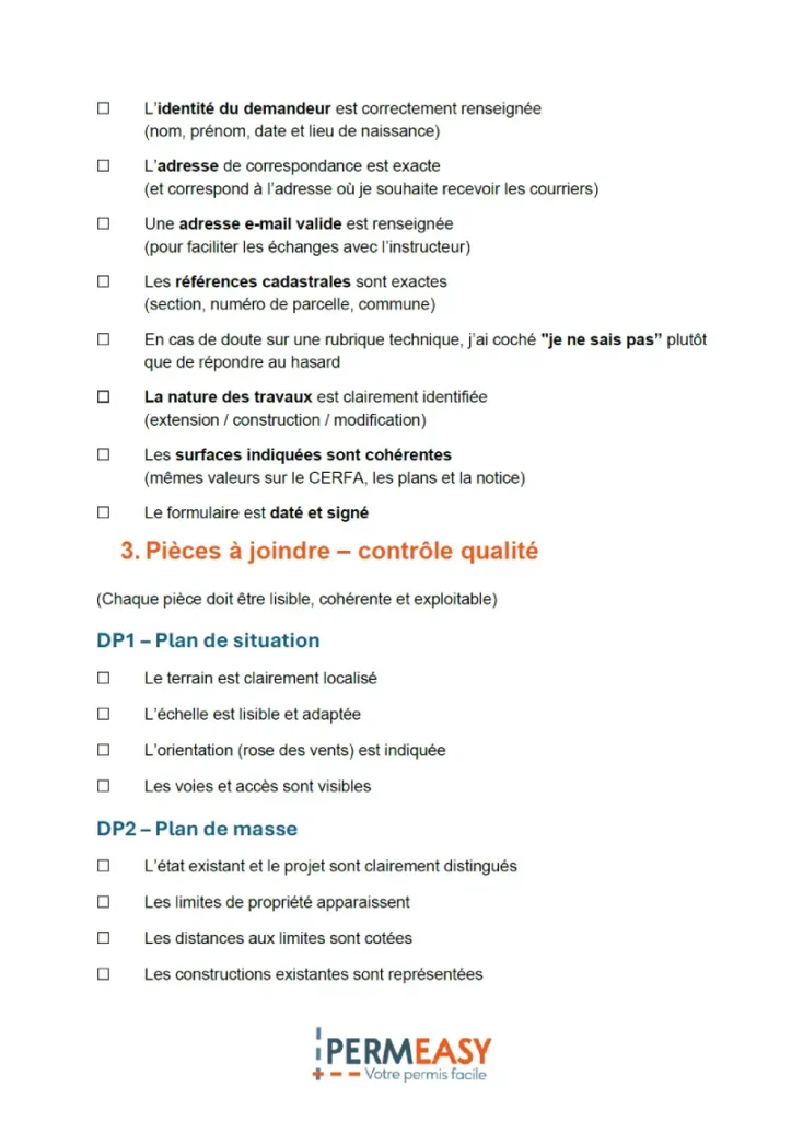 Pour vous aider à structurer votre dossier et vérifier chaque document avant dépôt, vous pouvez vous appuyer sur un guide complet détaillant l’ensemble des étapes et des pièces à fournir. Vous réalisez vous même votre propre dossier, mais en le sécurisant au maximum en vue du dépôt et de l’instruction.