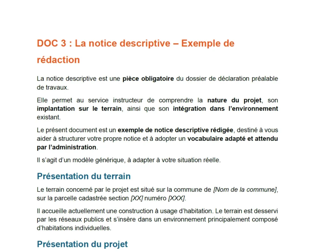 La notice descriptive est un document expliquant le projet de manière simple et claire.