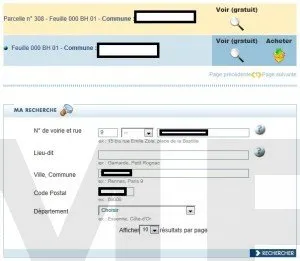 Il se peut que le site du cadastre ne retrouve pas directement la parcelle. Vous serez alors invité à sélectionner l’une des adresses qui s’afficheront en rouge dans l’ascenseur situé dans le cadre « Ma recherche ». Lorsque cela se produit, toute une liste de parcelle peut apparaitre.