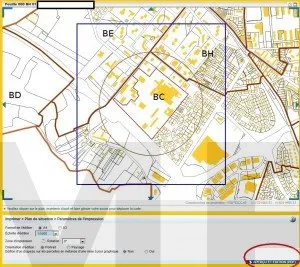 Cliquez enfin sur « Valider » placé en bas à droite de la fenêtre. Un cercle rouge s’affichera automatiquement. Ce cercle rouge représente l’ensemble des parcelles qui seront imprimées dans le plan de situation.