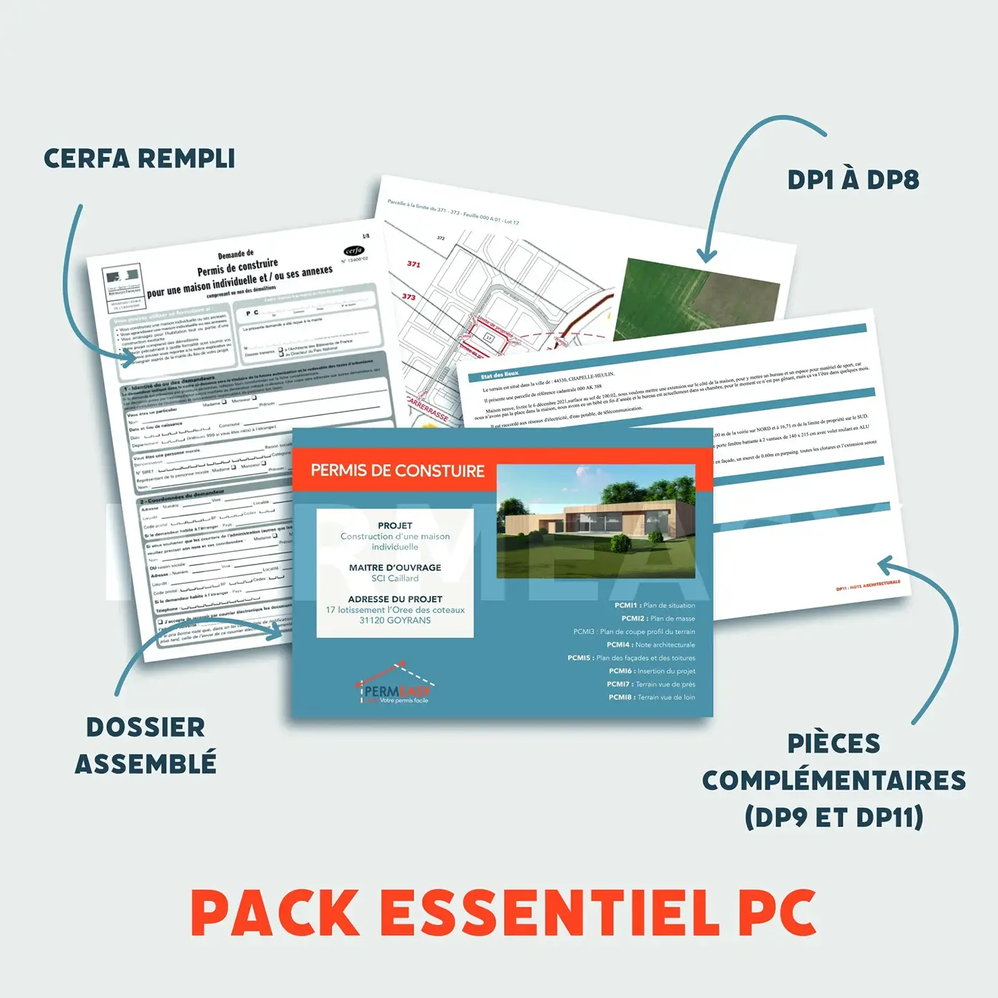 Permeasy vous propose un pack économique comprenant les éléments essentiels pour faire votre demande de permis de construire rapidement. Nous vous garantissons une demande de permis complète.