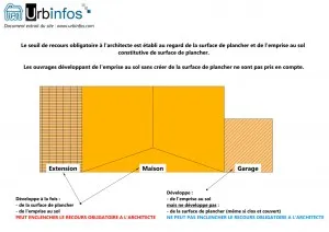 Il convient toutefois de préciser que le seuil de recours obligatoire à l’architecte s’apprécie au regard de la surface de plancher et de l’emprise au sol développant de la surface de plancher.