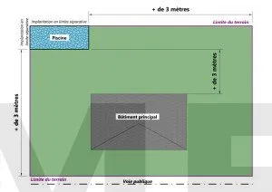 - Et/ou selon une distance minimale de 3 mètres depuis les limites du terrain et depuis les autres constructions déjà bâties.