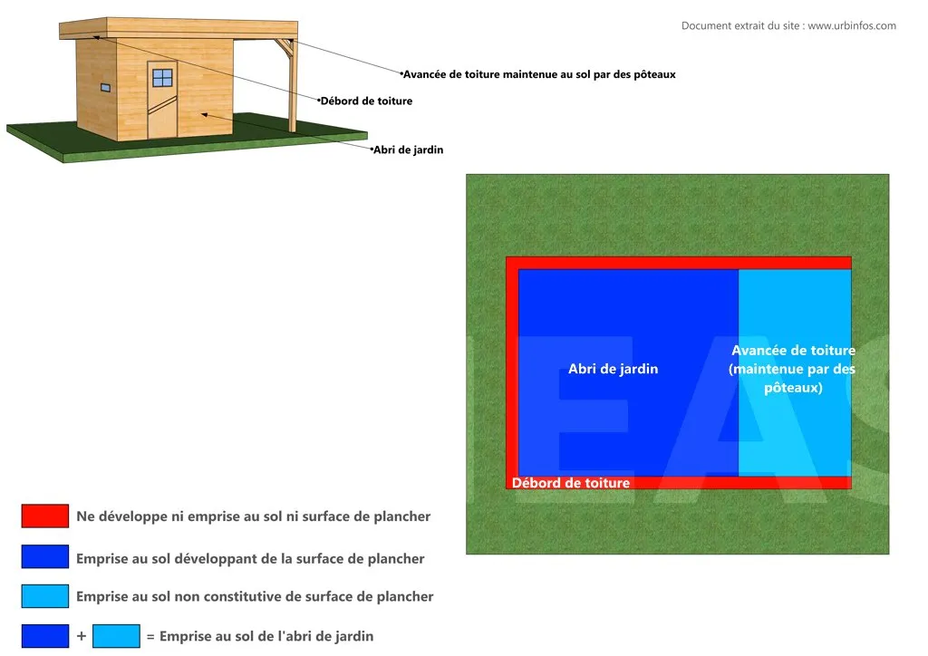 L’emprise au sol et la surface de plancher doivent être inférieures à 5 m²