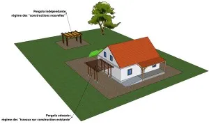 Ce sont notamment ces dispositions qui, dans le cadre d’une pergola, distinguent les formalités applicables aux pergolas accolées de celles applicables aux pergolas indépendantes.